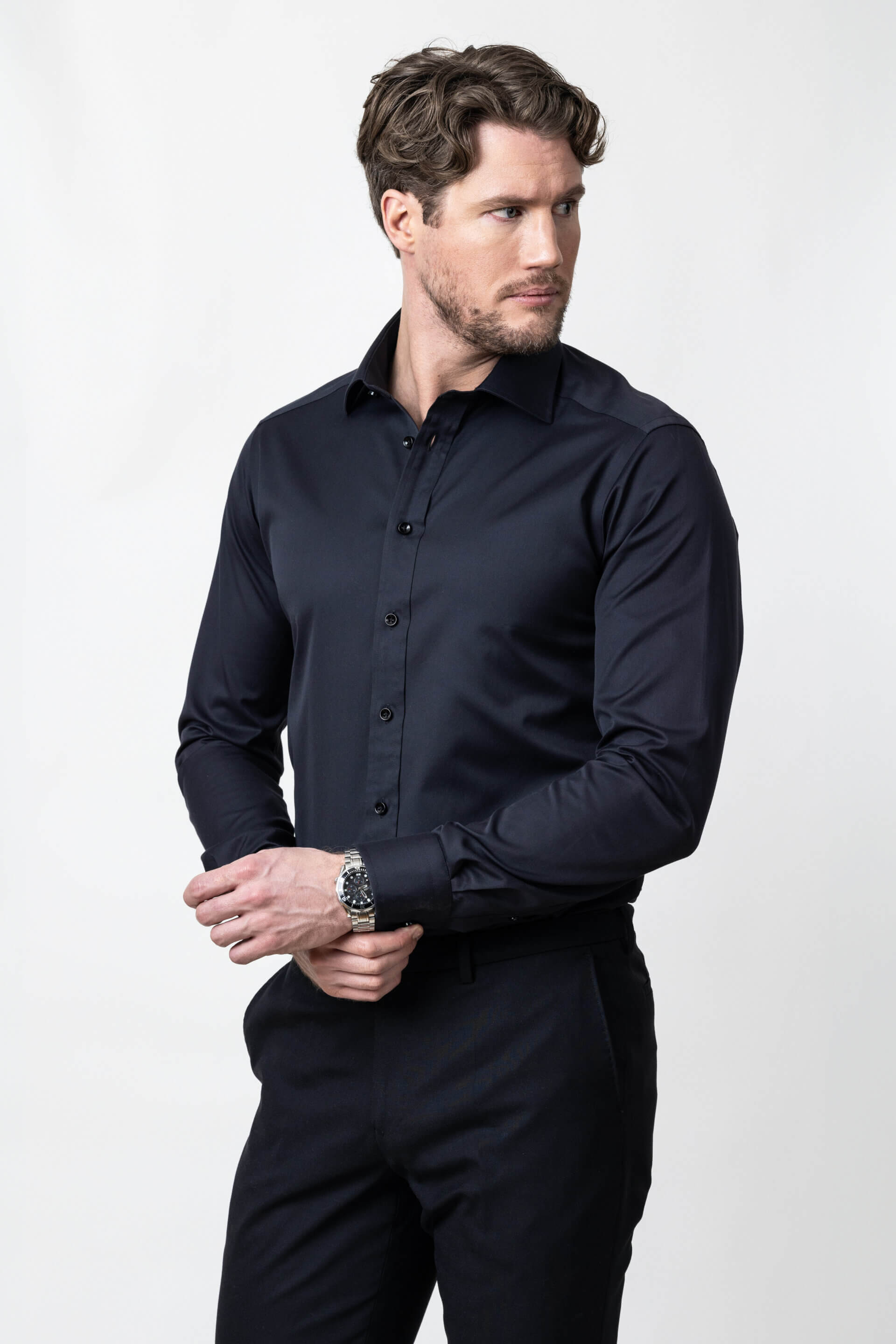 J. Harvest & Frost Green Bow 01 on puhdaslinjainen ja laadukas yksivärinen kauluspaitaa. Vaikka paidat ovat yksivärisiä, niiden yksityiskohdat erottavat ne muista kauluspaidoista. Kauluspaita on valmistettu suosikkimateriaalistamme, laadukkaasta twillkankaasta. Sen ansiosta paita kiiltää kauniisti, tuntuu mukavalta ja siitä näkyy vähemmän läpi kuin tavallisesta valkoisesta kauluspaidasta. Persoonallisuutta tähän muodikkaaseen, mutta klassiseen kauluspaitaan tuovat jaettu selkäkaarroke, puolileveä haikaulus ja 35 mm:n tikattu nappilista. Värit: musta, valkoinen, vaaleansininen, tummansininen, keskisininen ja harmaa. Osa kauluspaidan väreistä säilytetään kotimaan varastossa, jolloin paidat saadaan nopeastikin toimitettua.